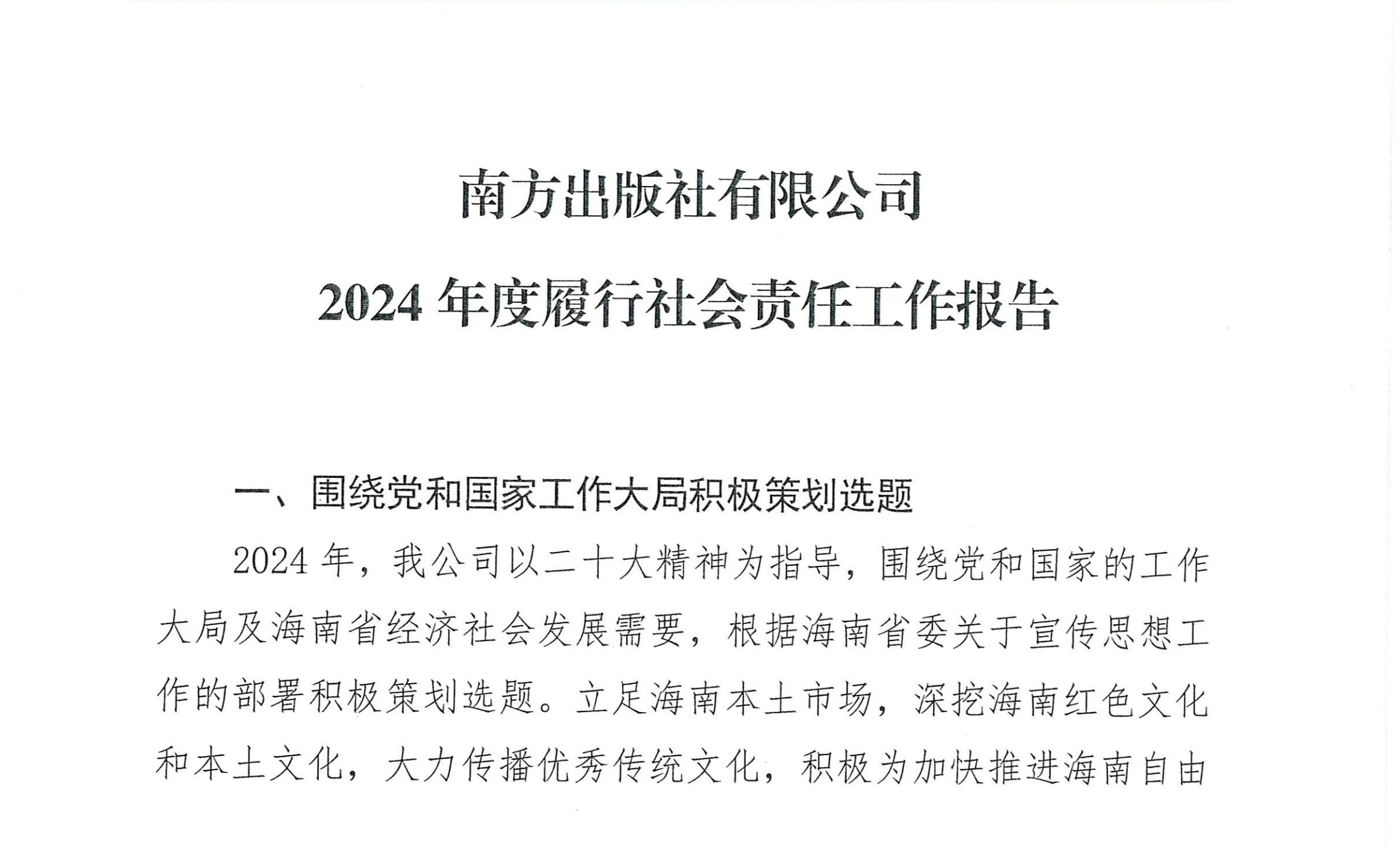 南方出版社有限公司2024年度履行社会责任工作报告
