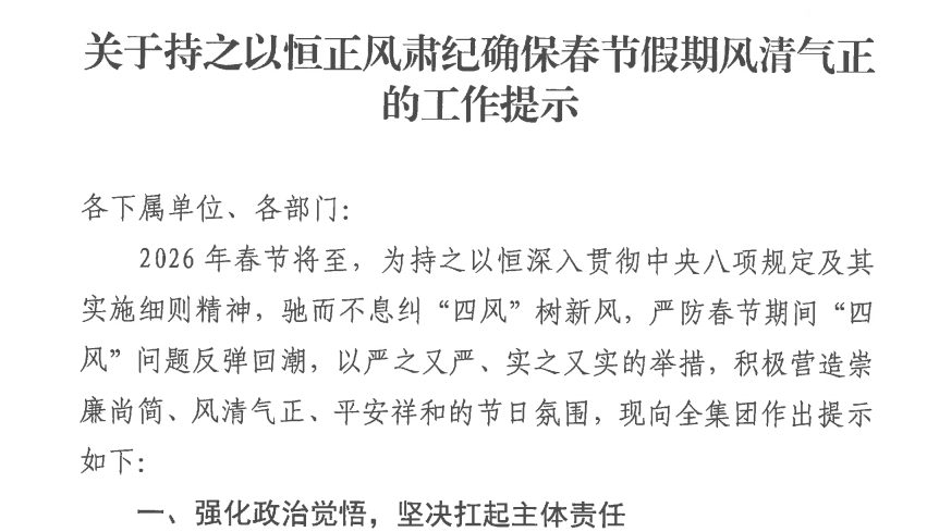 关于持之以恒正风肃纪确保春节假期风清气正的工作提示