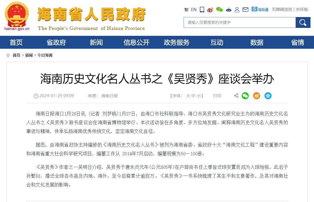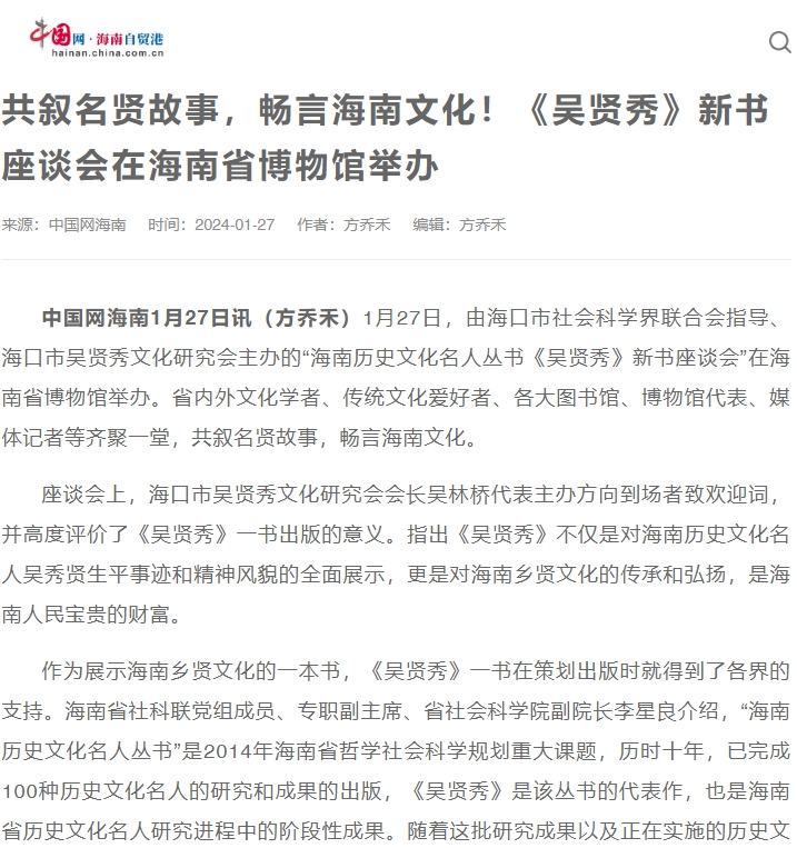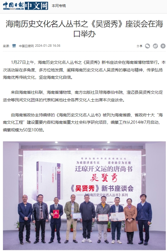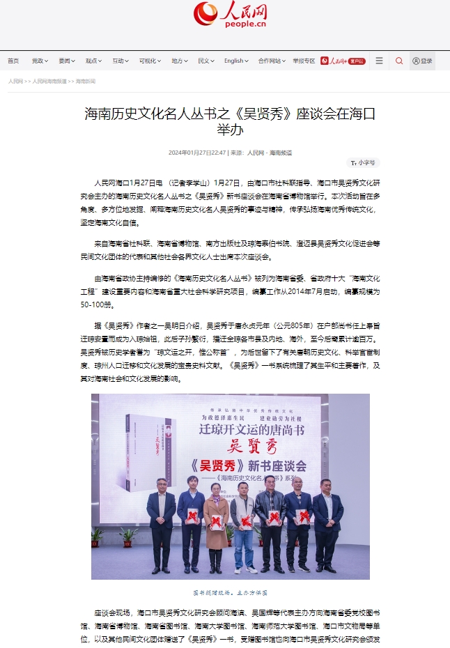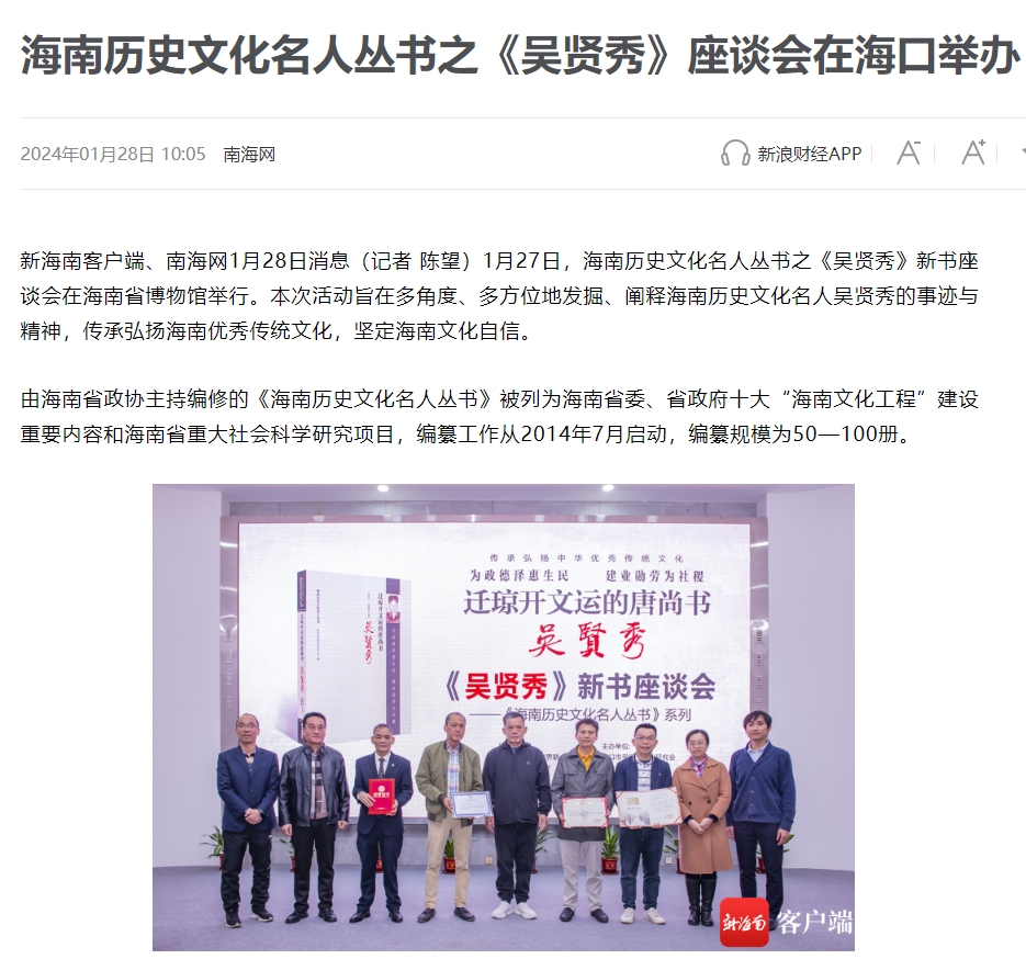 《迁琼开文运的唐尚书吴贤秀》新书发布